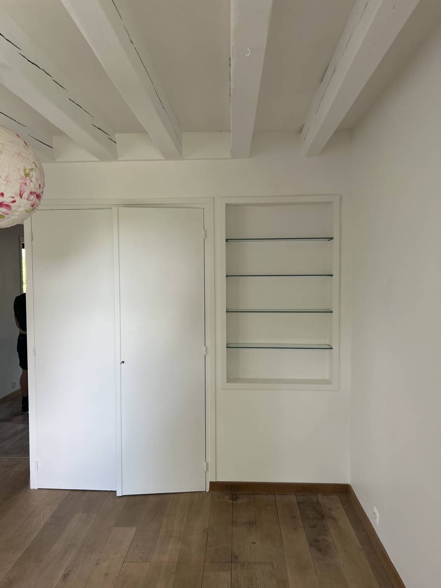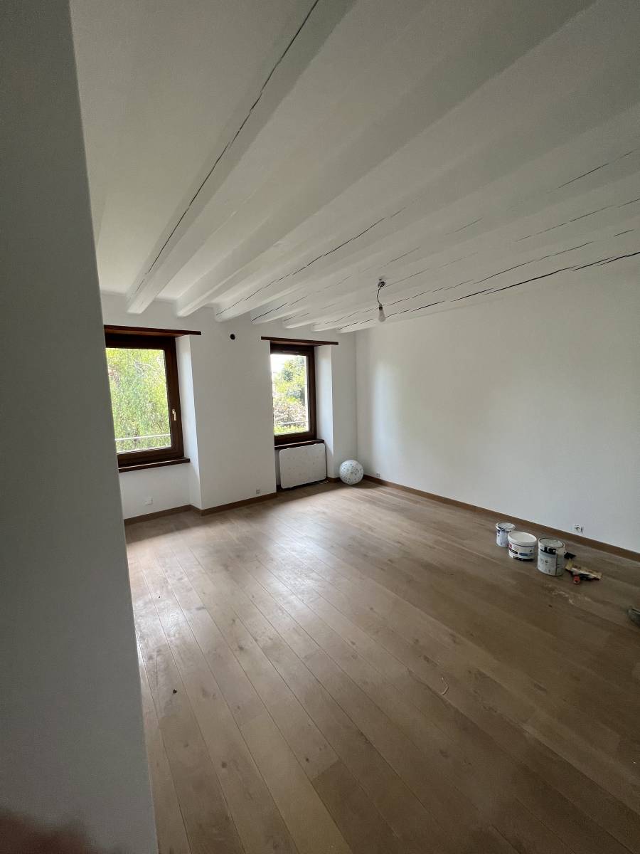 Mister Renov’ vous présente une rénovation de peinture intérieur sur Genève. Cette réalisation est signée Mister Renov’. Nous avons était contacté pour réaliser des travaux de peinture en intérieur, de rebouchage, ainsi qu’un remplacement de moquette par du parquet. La maison avait une peinture vieillissante, des murs fissurés, des traces de fuites d’eau, des trous au plafond, ainsi qu’une vieille moquette pas au goût du jour…